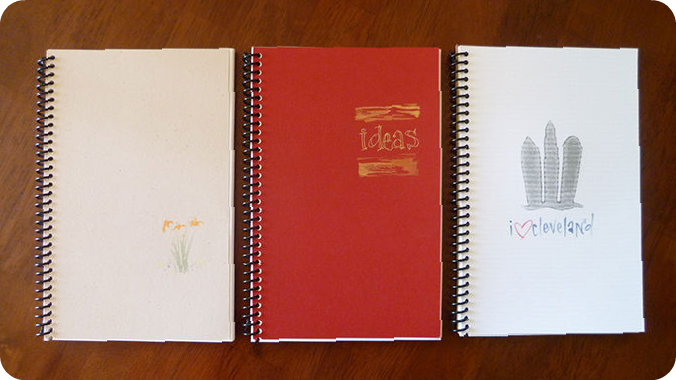 Journals are sprial bound by hand, have approximately fifty sheets per item and come in three versions: